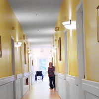In the past year, Basile has practically forgotten how to speak English and mumbles in Italian. At Paradise for four months, she watches old WWII movies on a flat screen TV in her 240 square-foot carpeted room, which has a fridge, microwave, dresser, and twin bed, and a private bathroom.