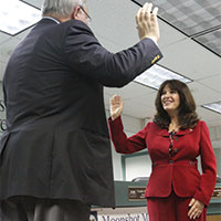 Even though Simchick’s arrival may signal some coming controversy, everyone was all smiles last Friday when she was sworn in by Indian River County Judge Paul Kanarek. The School Board room was filled with district employees and fellow board members to welcome her.