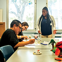 Photo: Fatima King explains how creating art can be a useful form of therapy to patients as they work on painting at the Behavioral Health Center.