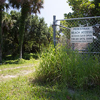 The fenced property has two gates along A1A. One of those gates has for many years – no one knows exactly how long – had a sign permitting Town residents to use the land for beach access. Attorney Clem said last Wednesday that the sign, and the historic use of the property, does not give Pebble Bay residents any grandfathered-in legal right to beach access.