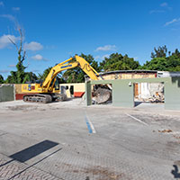 Today, the former restaurant and a small office building on the site are encircled by a chain link fence and are undergoing demolition. “The fence went up last week and we’ve been nibbling at the building,” said MacDonald.