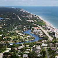 Bethel Creek begins on the barrier island near the Village Market and curves through residential neighborhoods to enter the lagoon near the city marina.