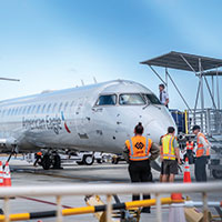 When the small CR9-Canadair commuter jet touched down at Vero Beach Regional Airport at 11:21 a.m. last Thursday with 61 passengers aboard from Charlotte, N.C., a few minutes ahead of its scheduled 11:30 a.m. arrival time, it ran into some congestion. The plane was held up at the end of the runway for a few minutes to give a Breeze Airways Airbus jet bound for Hartford, Conn., time to get out of the way and cede the prime parking spot at the small terminal.